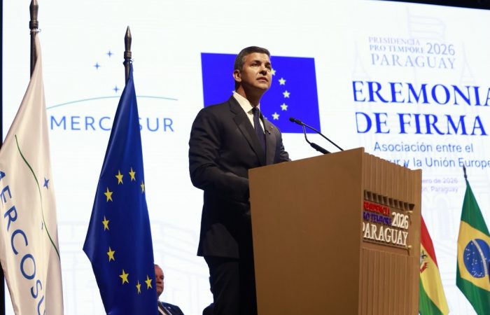 Durante la firma del histórico Acuerdo Mercosur–Unión Europea, el presidente de la República, Santiago Peña, sostuvo que, en un escenario global marcado por tensiones, este paso envía una señal clara a favor del comercio internacional como factor de cooperación y crecimiento. “Los países del Mercosur estamos convencidos de que la integración económica, la colaboración y el multilateralismo son el camino”, indicó.