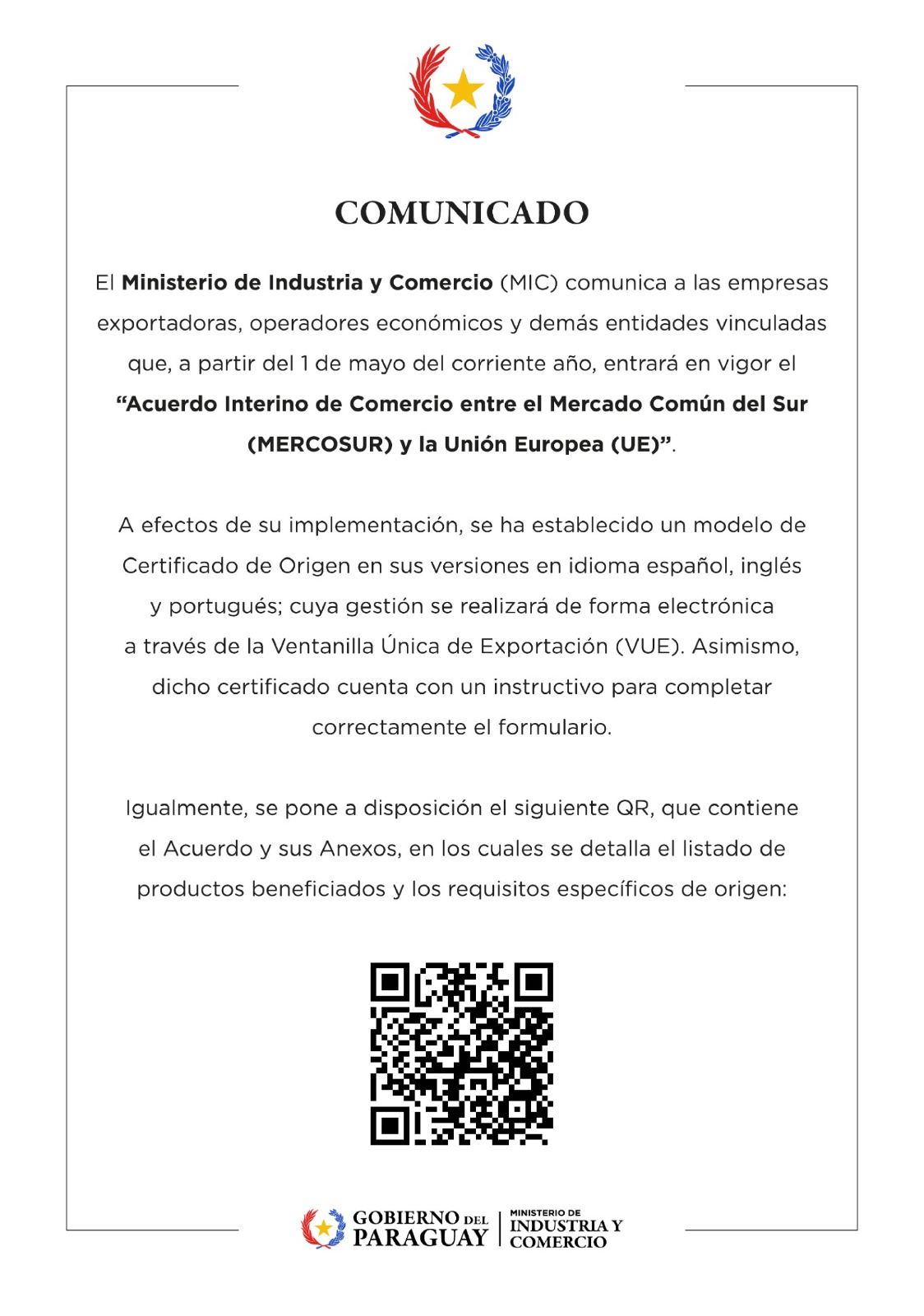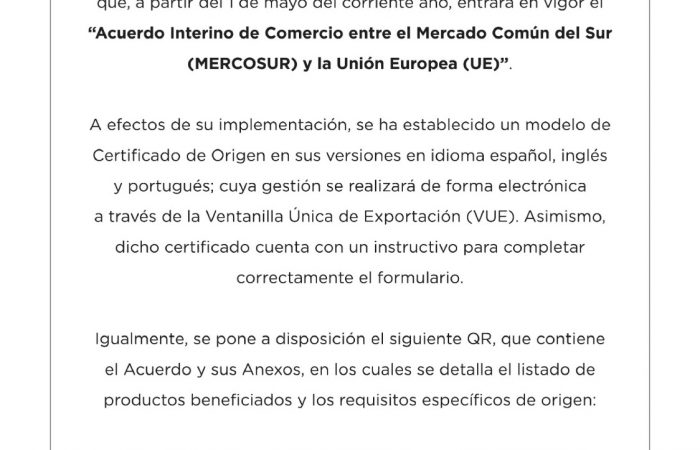 Comunicado sobre Acuerdo Interino de Comercio entre el MERCOSUR y la Unión Europea
