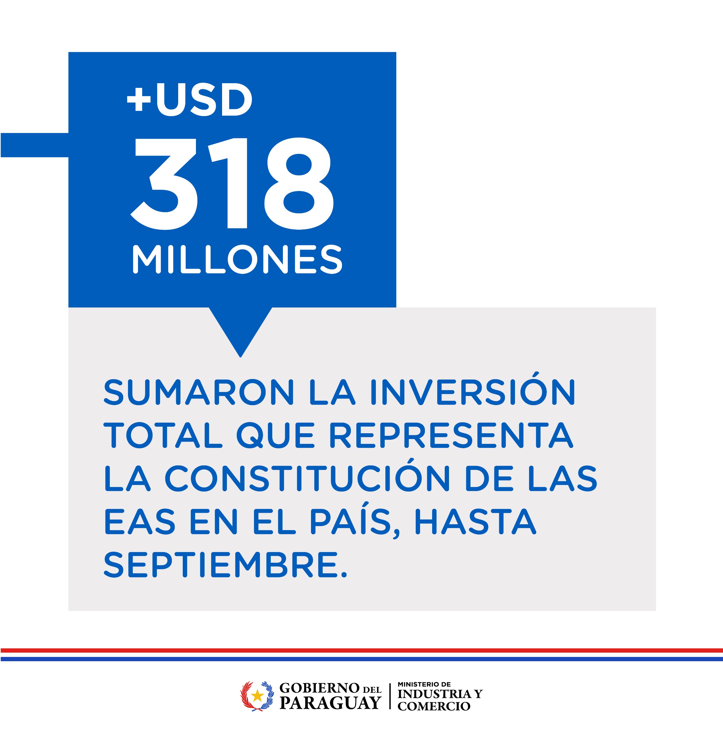 Durante este lapso, las inversiones canalizadas a través de las EAS alcanzaron los USD 318 millones, de los cuales el 77% corresponde a capital nacional y el 23% a inversión extranjera, reflejando la confianza del sector privado en el entorno económico del país.