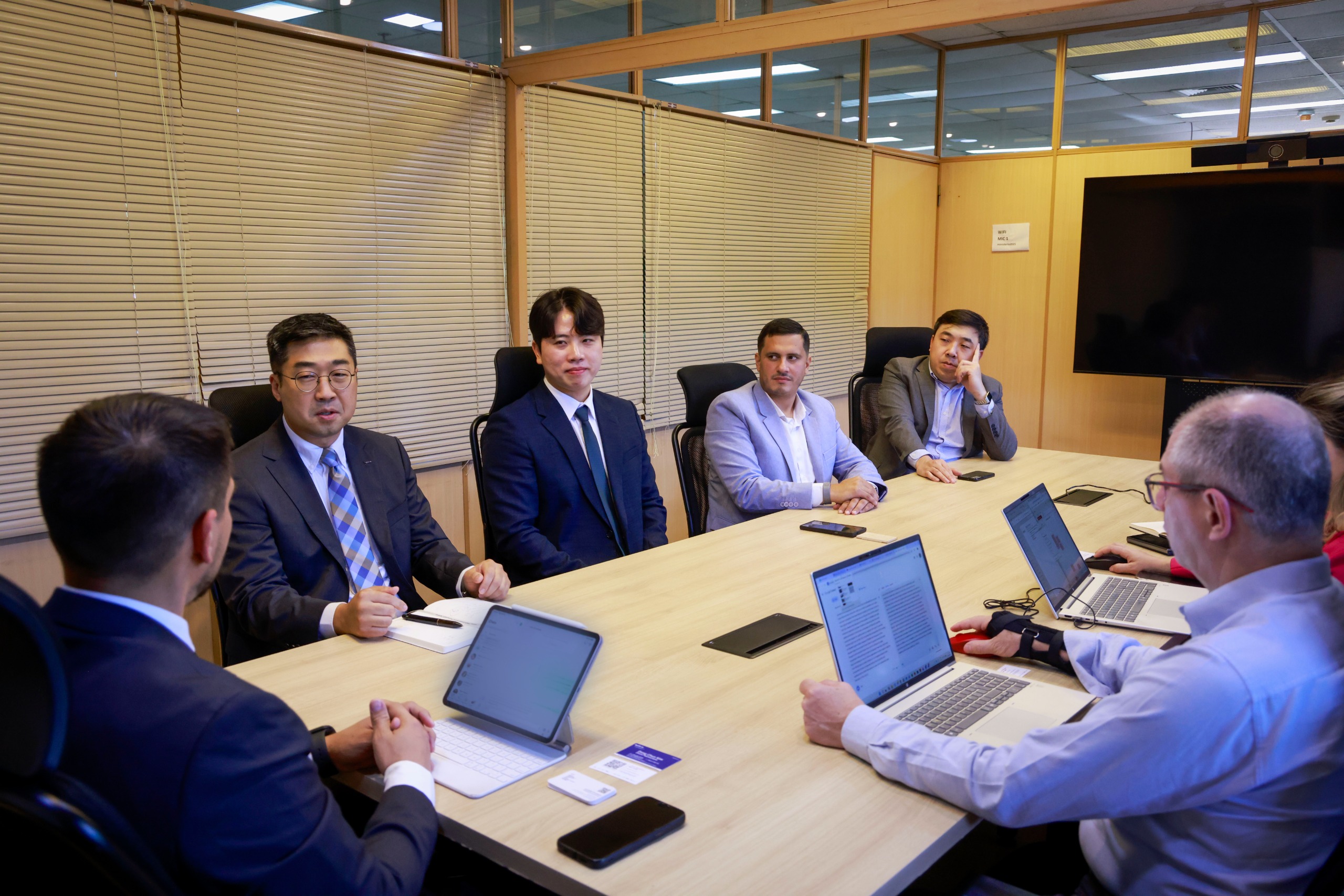 El viceministro de Industria, Javier Viveros, junto al especialista senior de Rediex, Jimmy Kim, mantuvieron un encuentro con directivos de la empresa coreana Meere Company, dedicada a la fabricación de dispositivos médicos y soluciones de salud digital, con miras a la instalación de un centro de entrenamiento que permitirá posicionar a Paraguay como un hub regional en cirugía robótica, con capacidad para atender la demanda del mercado sudamericano.