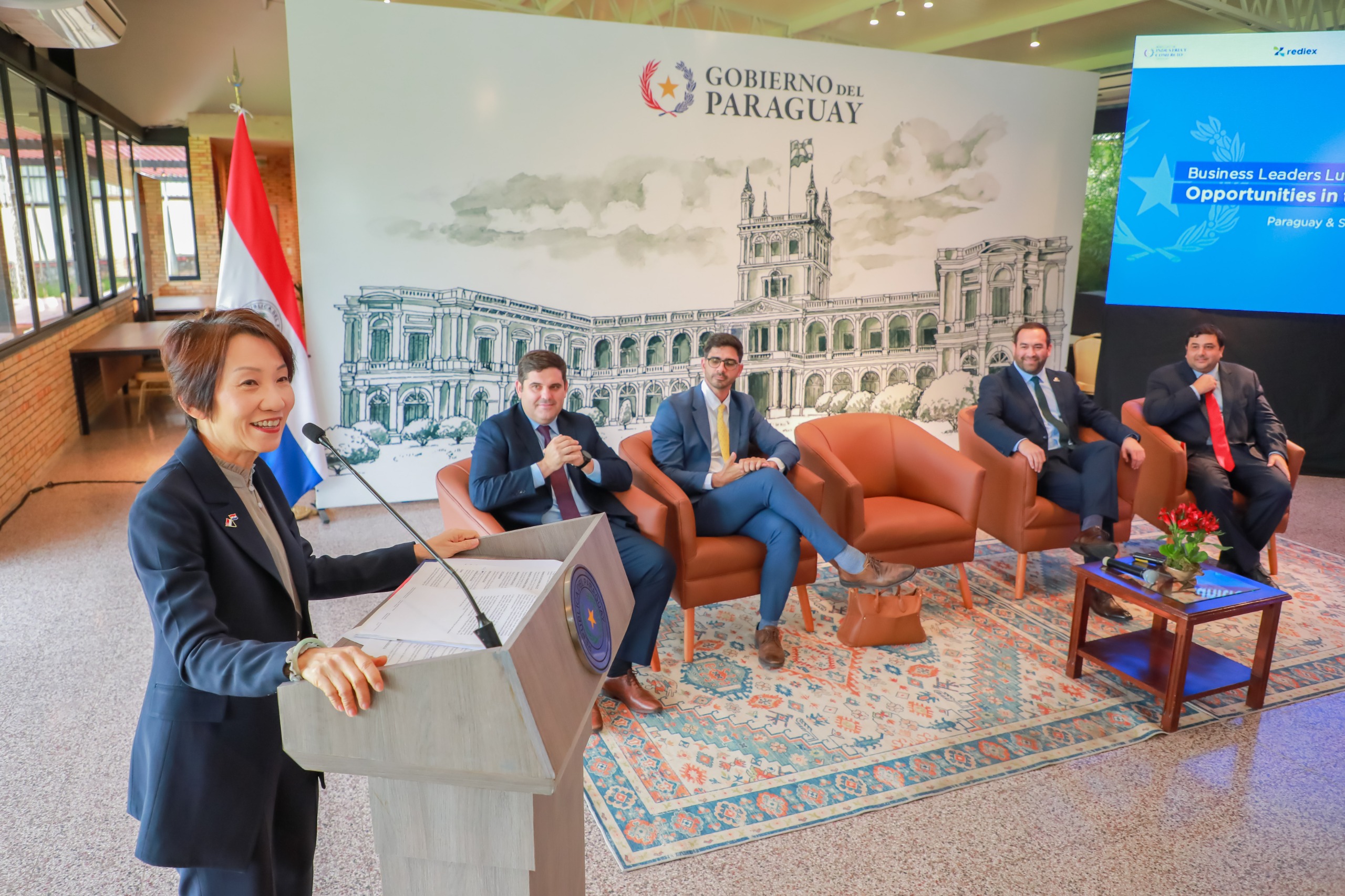 En el marco de la visita oficial de la ministra de Sostenibilidad y Medio Ambiente y ministra encargada de Relaciones Comerciales de Singapur, Grace Fu, se llevó a cabo un almuerzo de líderes empresariales en Mburuvicha Róga, con la participación de autoridades del sector público y privado, en un espacio orientado a profundizar las relaciones comerciales entre ambos países.