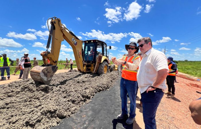 Durante un recorrido por la zona de obras en el tramo Pozo Colorado–Concepción de la Ruta PY05, el ministro acompañó al presidente de la República, Santiago Peña, y destacó que la nueva metodología de construcción vial permite sustituir materiales importados, como el asfalto, por cemento y microfibra de producción nacional, incorporando mayor valor agregado a la cadena productiva local.